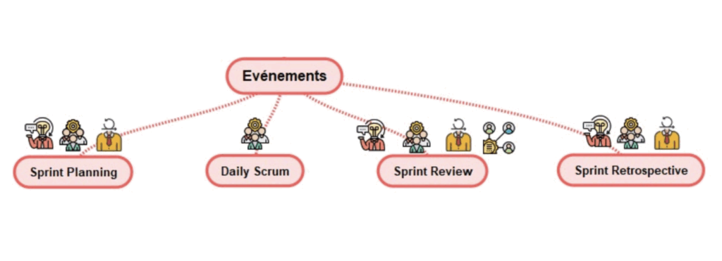 Nous verrons un peu plus loin 4 événements formels d’inspection et d’adaptation.